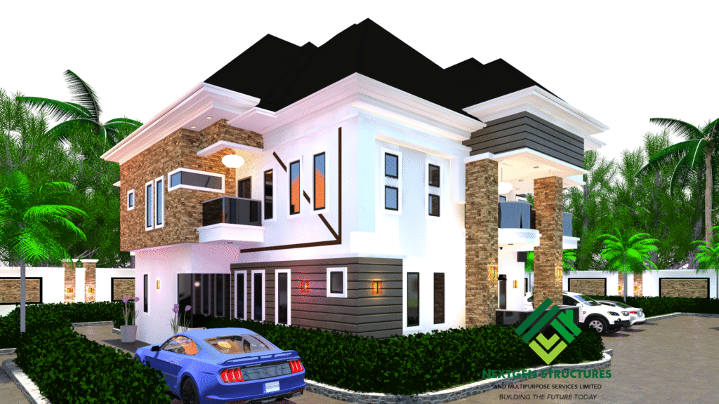 Envision your dream home with Nextgen STRUCTURES’ 5-Bedroom Modern Duplex Design (Design ID: NXD-075-25). This architectural masterpiece is meticulously crafted for luxury, functionality, and modern living, perfect for families or individuals seeking a stylish, spacious home in Nigeria. Ready to bring this design to life? Let’s build your future!